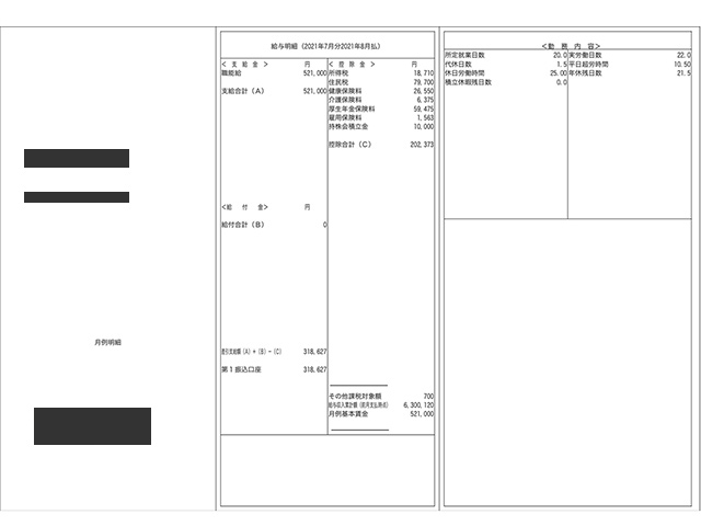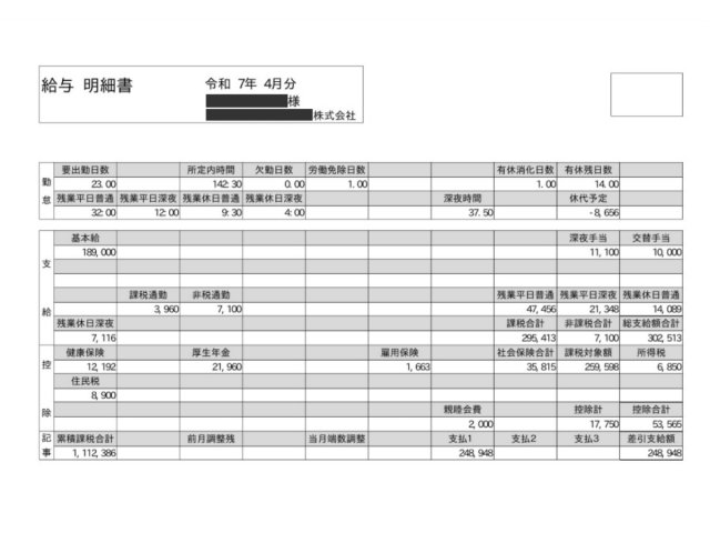 施工管理の給与明細