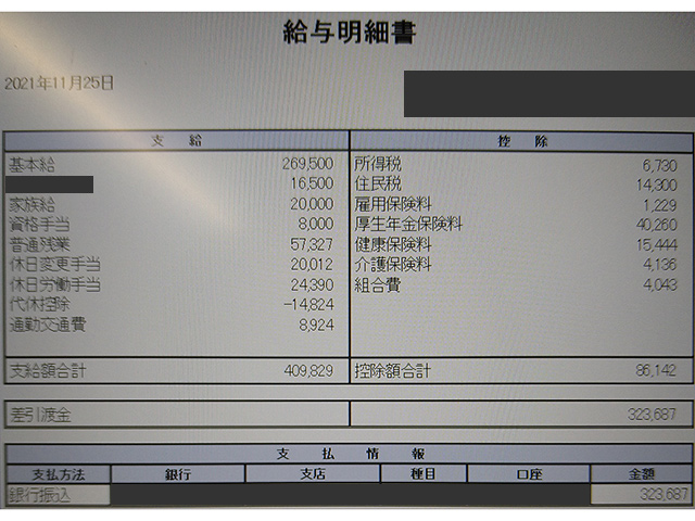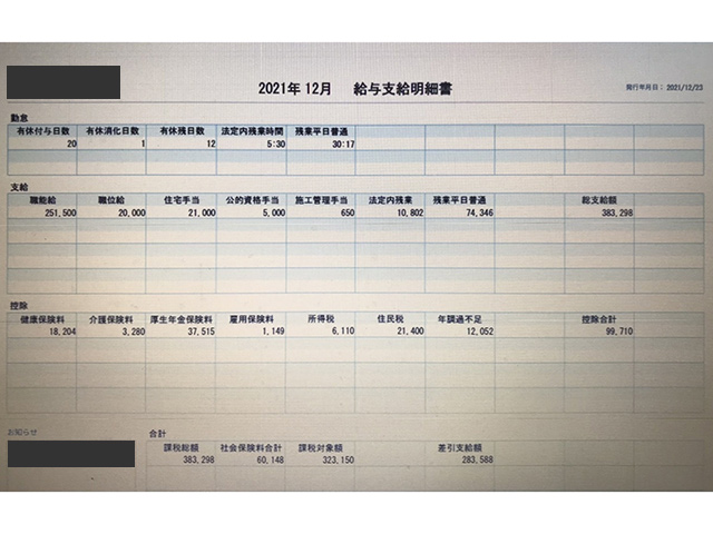 施工管理の給与明細