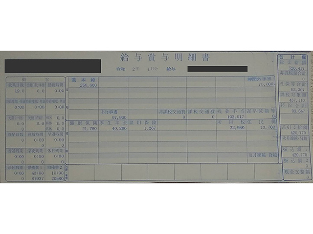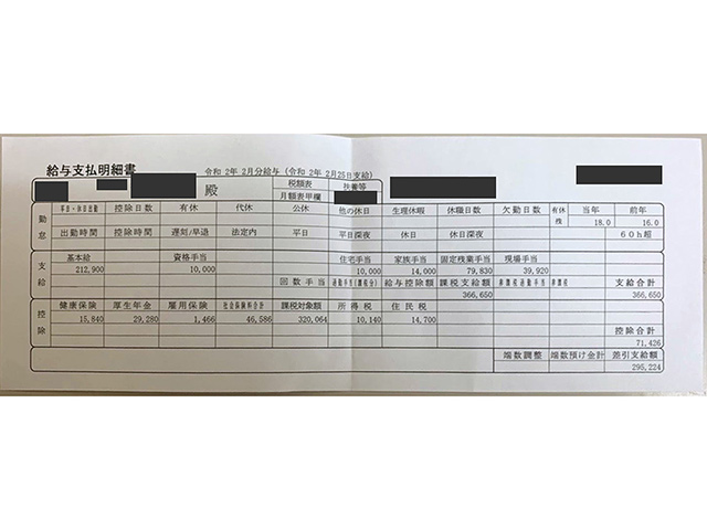 施工管理の給与明細