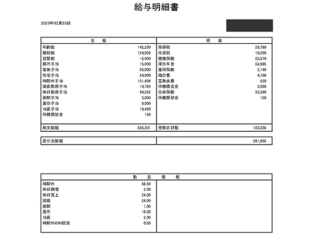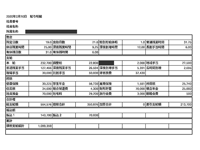 施工管理の給与明細