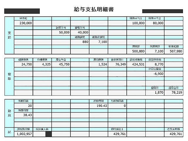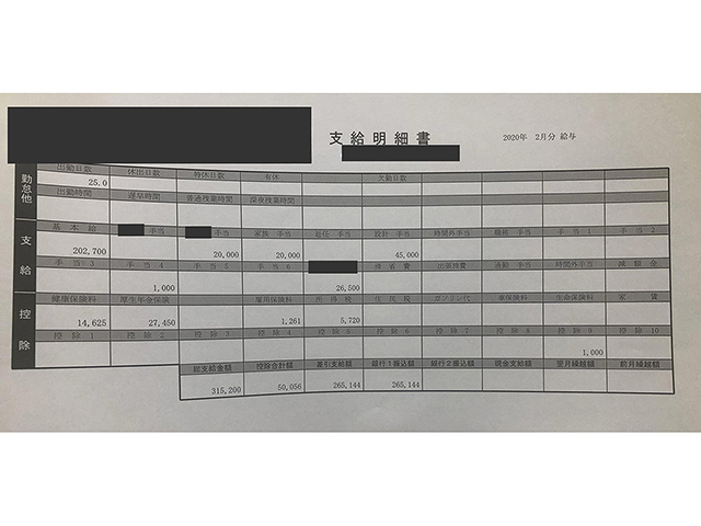 施工管理の給与明細