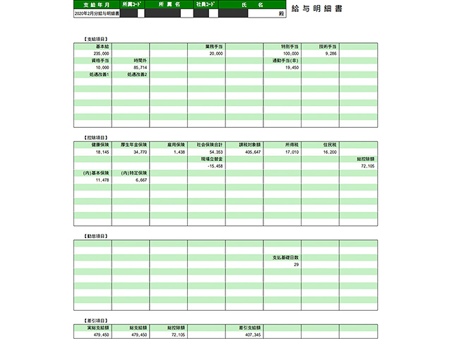 施工管理の給与明細