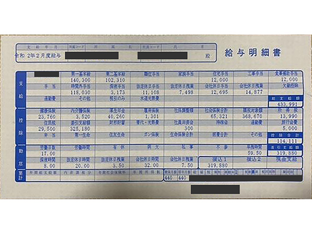 施工管理の給与明細