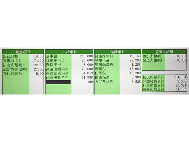 県内でも同業者の中ではもらっているほうだとおもっているので不満はない。 休みは毎週日曜日は基本的に休みで祝日や土曜日も現場次第で休みなので不満はない。