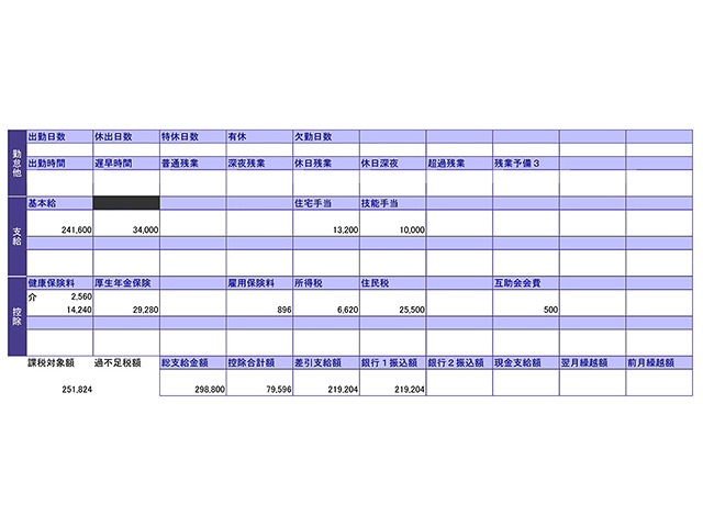 施工管理の給与明細