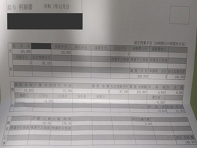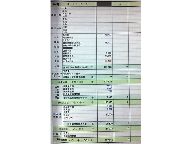 施工管理の給与明細